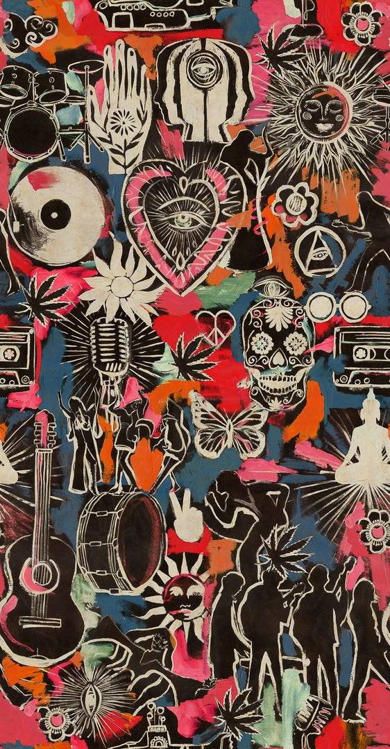 For festival lovers across the world, who love the community such events bring and the sense of belonging in a specific place and time. Fill the room with memories where no rules or systemic restraints belong. A moment where you are at one with the music, at one with the world and at one with yourself. Peace and happiness overcome you as you’re immersed in the melodies as the sun sets, feeling full of love as people dance around you. Your eye is drawn to the intricate details across this FESTIVAL MEMORIES wallpaper, designed with both light and dark backgrounds, encouraging you to party all through the day and night.