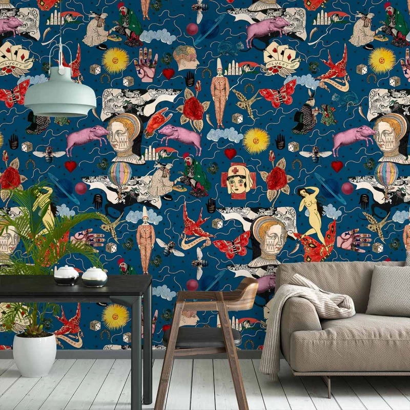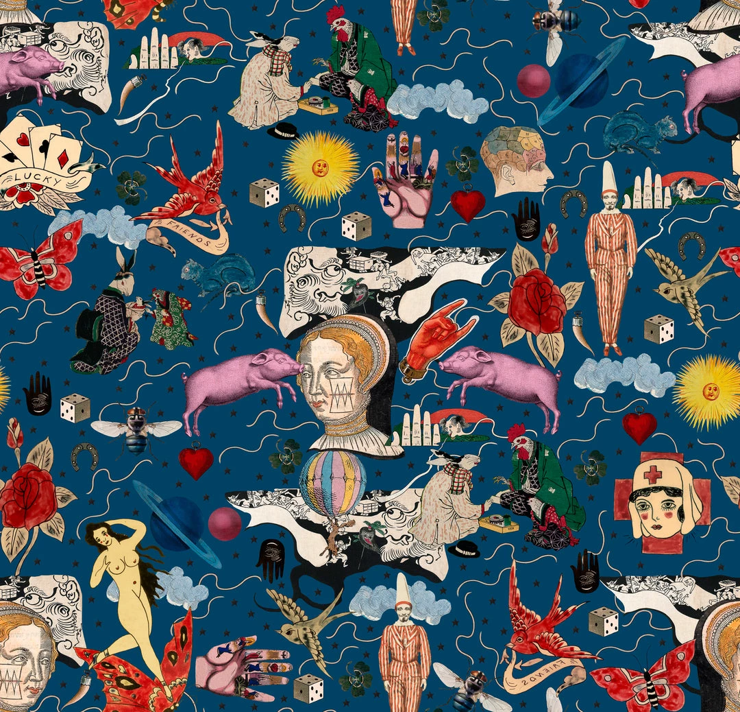 Absorb yourself in a world of magic, and optical illusions, where the boundaries of reality become blurred. Let your imagination take you to another realm where pigs fly, animals play games and lucky charms are there for the taking. Above the stars, the clouds, and the solar system, lies this ILLUSIONARY DAYTIME. One where you can escape to, from reality as you know it. One where magic is actuality, broadening your horizon and letting your sense of wonder take over in this dreamlike sphere set against blue and green backgrounds.