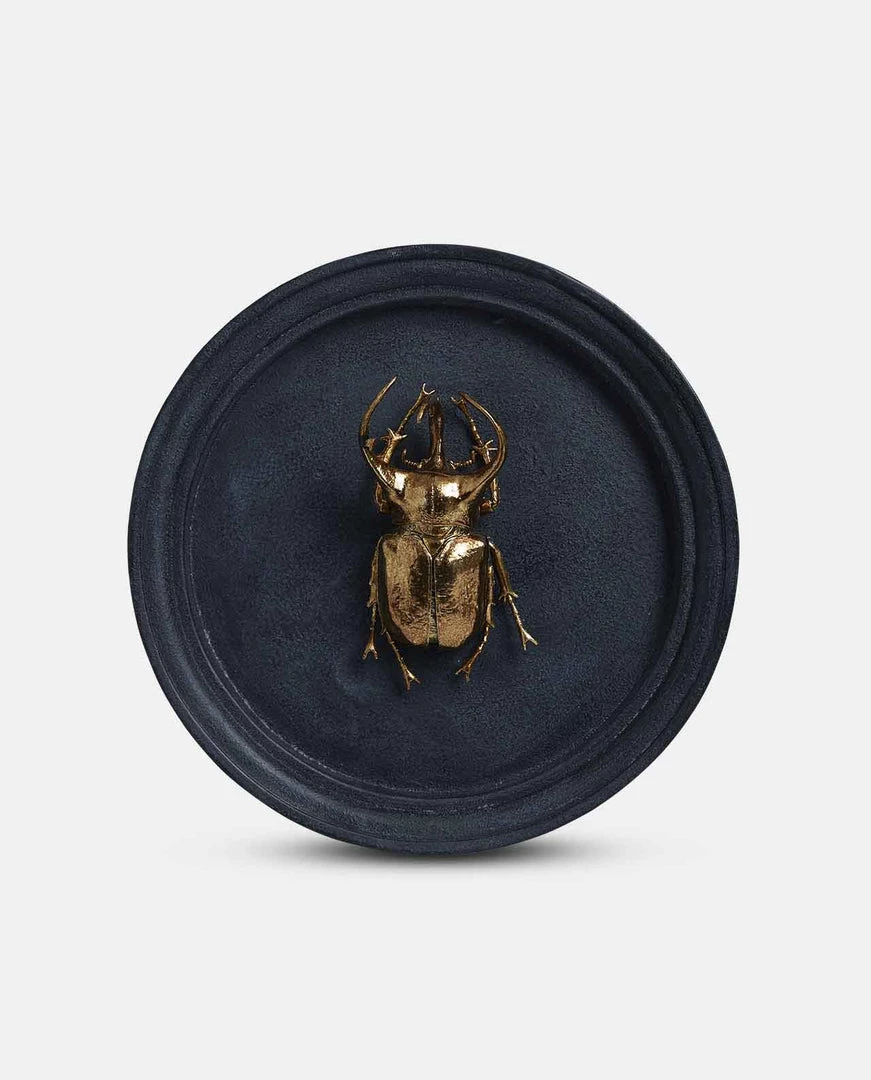 Large round Black Wall Plaque with Golden Beetle