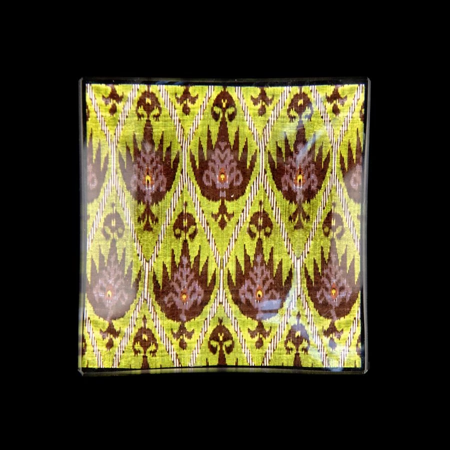 Glass plate with Bergamotto serigraphed printing.