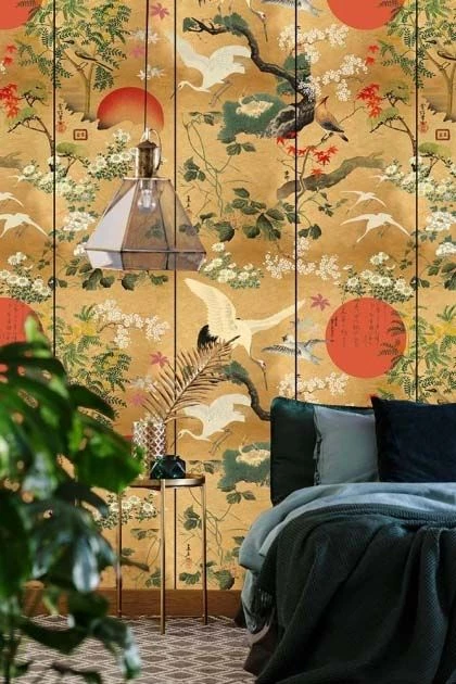 A mesmerizing, luxurious Japanese traditional design, printed fully on metallic foil, which creates a unique and relaxing atmosphere. The design is printed over 3 rolls.
