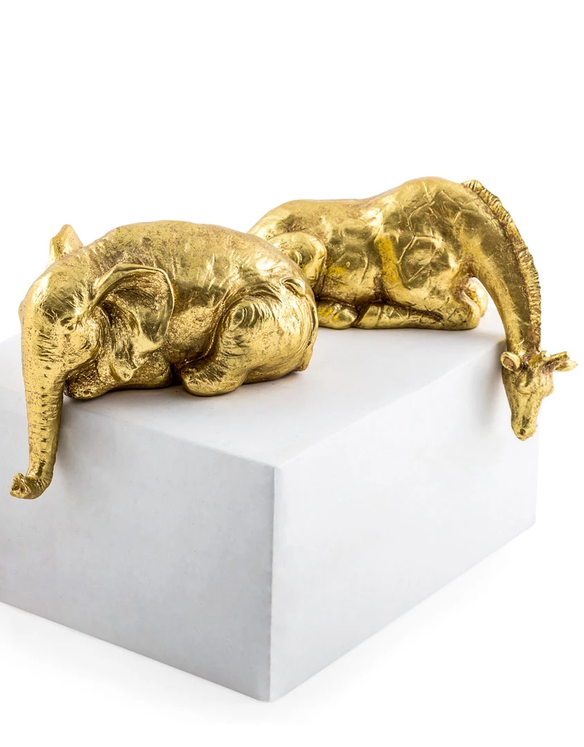 Gold Set of 2 “Peering Over” Giraffe and Elephant Figures