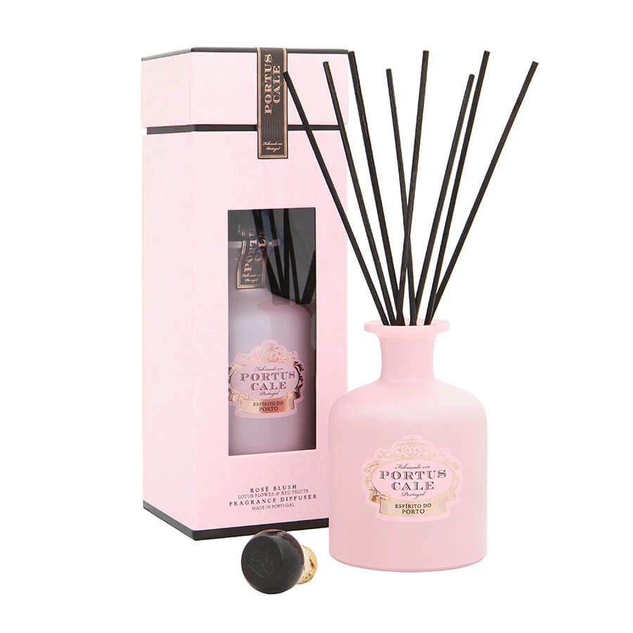 Rosé Blush Fragrance Diffuser is the ultimate statement of sophistication for the modern woman. With a matte pink glass adorned with golden arabesques over black and a sweet and floral aroma, this diffuser is a fragrant and elegant piece that fits any décor.
