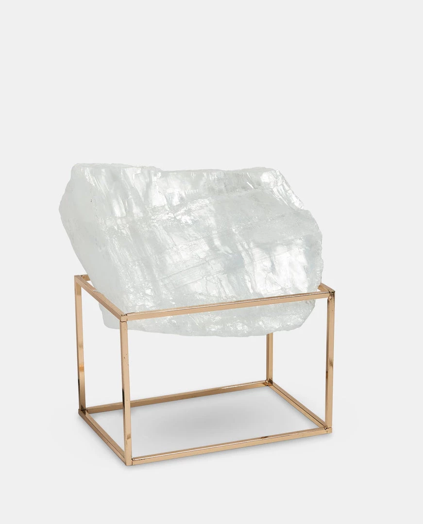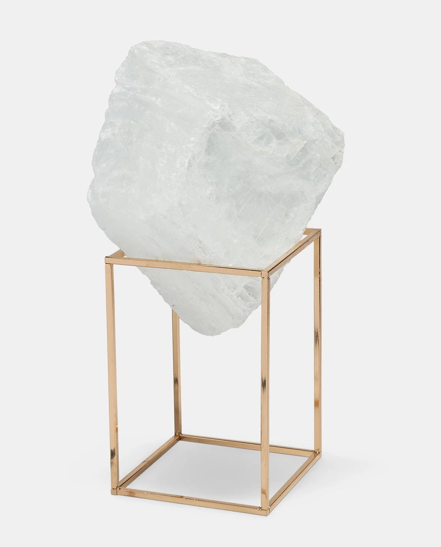 Natural Selenite Brass Table Top Decoration