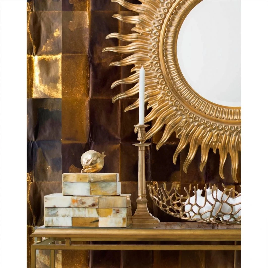 Displaying a subtle beauty in rusty tones, the SHIBUI Copper premium Wallpaper is a great choice for elegant as well as eclectic spaces. With a simplistic pattern in black and gold shades, the subtle details, such as textures and fine lines, balance simplicity with complexity and add volume to the entire canvas.