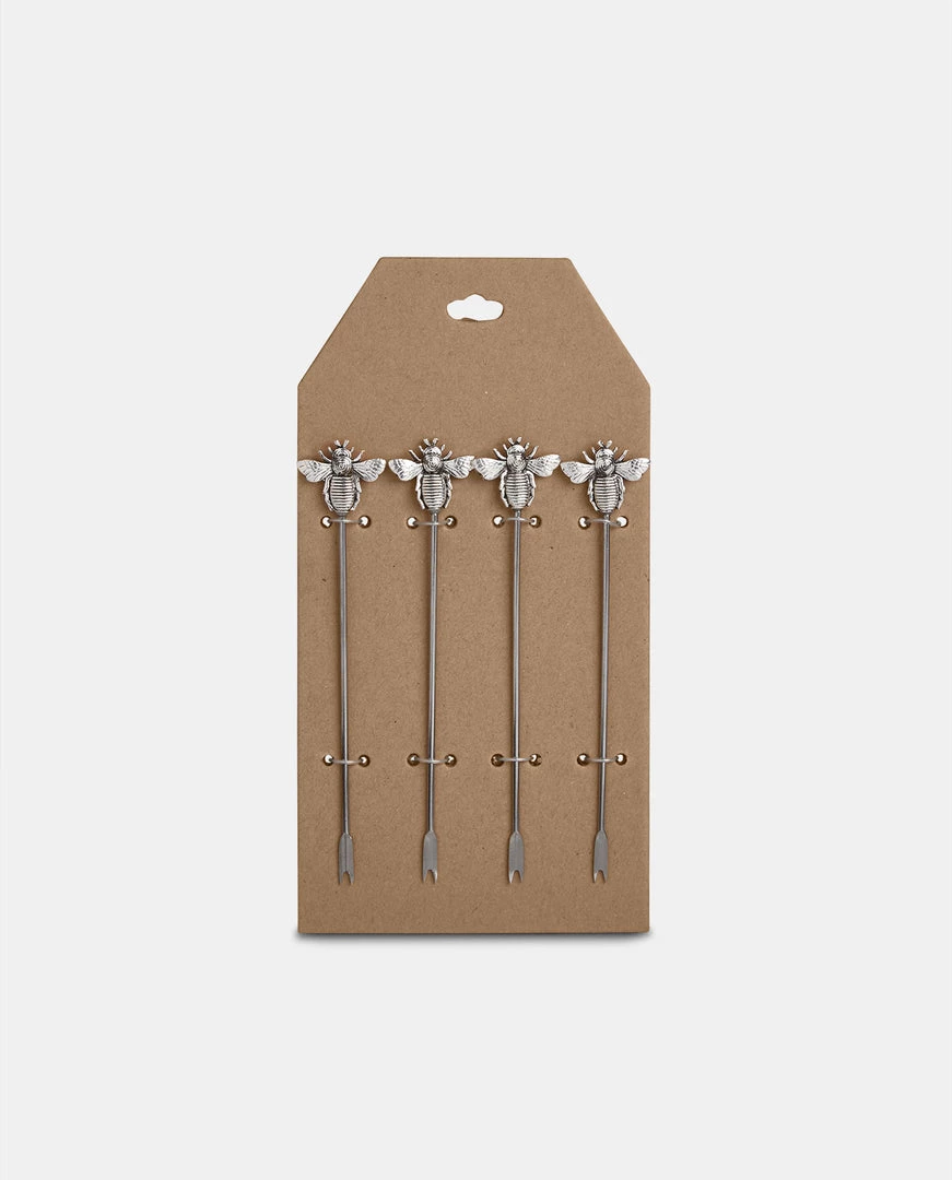 Papillon Living Silver Bee Cocktail Pick Set Of 4 Glassware & Barware