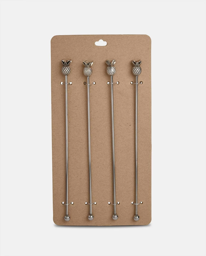 Set of 4 Silver Coloured Metal Cocktail Stirrers