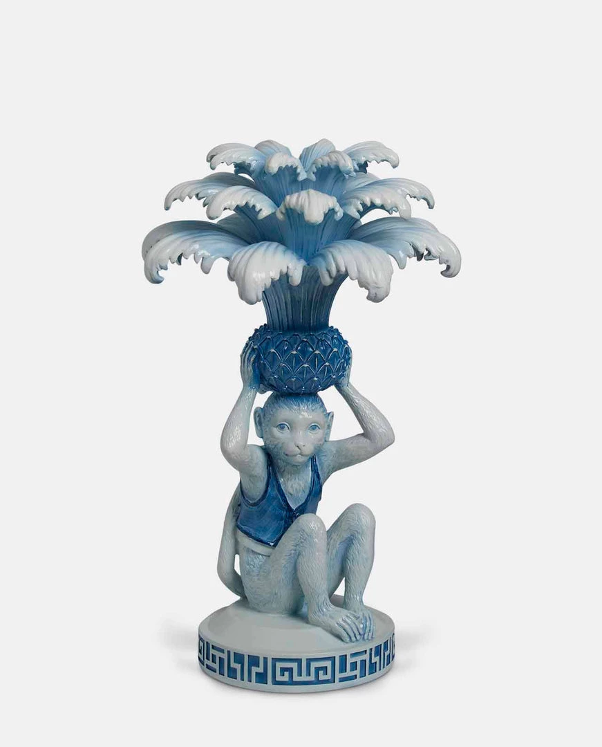 Papillon Living Tealight Holders & Candle Holders White & Blue Decorative Monkey Candlestick