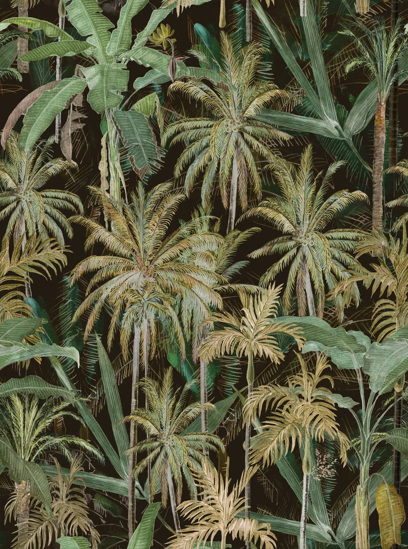 Inspired by the lush jungle vegetation of the Amazon, this wallpaper shows a variety of illustrated palms and tropical plants in a spectacular pattern. An overflowing, rich pattern with abundant elements that fill the background, the JUNGLE wallpaper adds volume to the space, while at the same time highlighting memories of an exotic holiday. Recharge and access the tranquil tropical paradise this wallpaper brings, in two colour versions: anthracite and smoke blue.