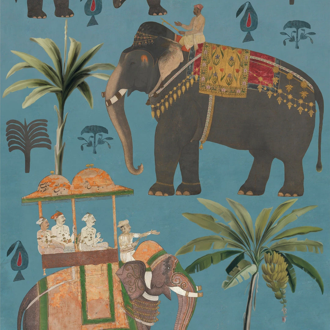 Feist your eyes on the gorgeous PROCESSION Wallpaper, illustrating a traditional procession from the beautiful world of India, on a deep blue background. Built around the majestic elephant, the entire design oozes symbols of the mystic Indian culture, making for a divine premium wall-covering.