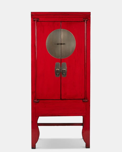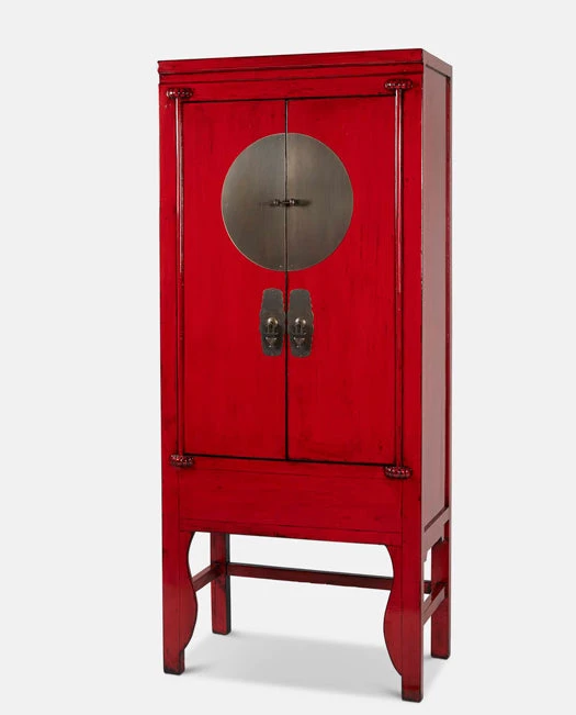 Elegant Tall Red Laquered Cabinet with removeable shelves a pole fixed for use for hanging clothes.
